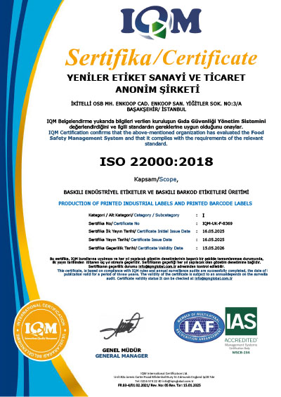 Yeniler Etiket, one of the leading companies in the sector in the production of Printed Labels, has all the international certificates required for manufacturing. We meet all the conditions required by these certifications and are in constant effort to maintain and renew them. Below are the certifications that we have: